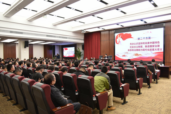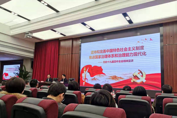 鄭向東根據(jù)中央有關(guān)精神,結(jié)合自己的學(xué)習(xí)與思考,重點(diǎn)宣講了五個方面的內(nèi)容:一是黨的十九屆四中全會取得重要成果,影響十分深遠(yuǎn);二是充分認(rèn)識堅持和完善中國特色社會主義制度、推進(jìn)國家治理體系和治理能力現(xiàn)代化的重大意義;三是深刻領(lǐng)會中國特色社會主義制度和國家治理體系的顯著優(yōu)勢,堅定中國特色社會主義制度自信;四是關(guān)于《決定》提出的總體要求、總體目標(biāo)和重點(diǎn)任務(wù);五是貫徹落實(shí)全會精神的要求。
